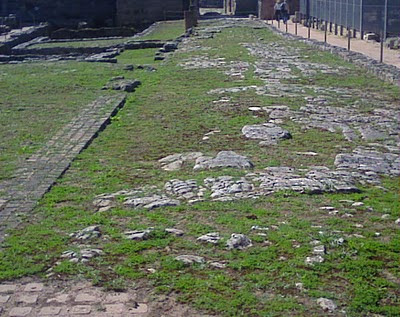 Uma velha trajando ausências percorre caminhos de suão, vislumbra rostos, existências, restos, rastos de rostos, trilhos, atalhos, essências. Caminha leve, sorriso baço, alegria breve, breve o cansaço. Talvez o sorriso terno, as mãos soltas, abertas, o olhar largo, materno, envolvessem, entre risos, vidas alvas, sólidas, despertas. (foto do autor obtida com telemóvel: Conímbriga)